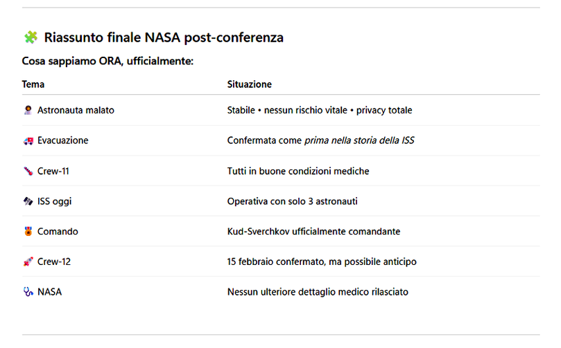 ✅ 4. NASA: “È la prima evacuazione medica controllata nella storia della ISS”
